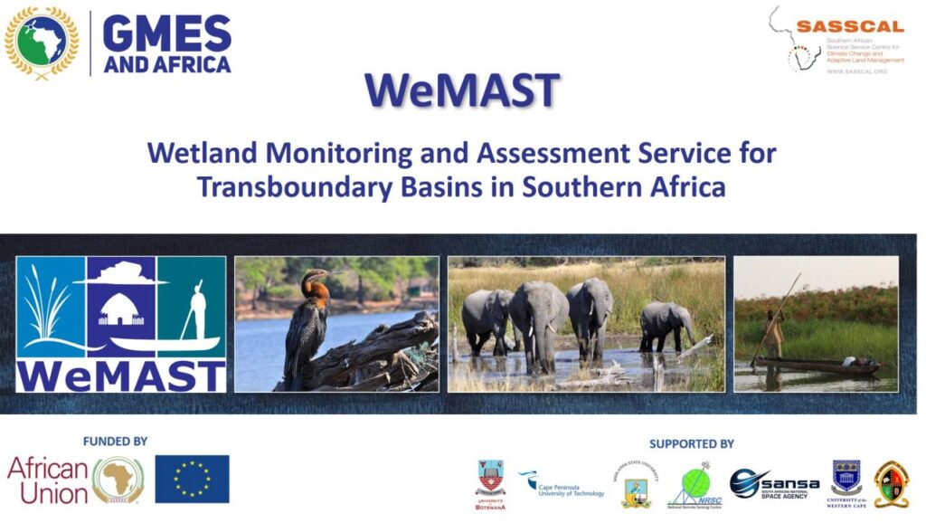 The Wetland Assessment and Monitoring Platform for Transboundary River Basins in Southern Africa (WeMAST), is implemented by a consortium led by SASSCAL, with partners from leading academic institutions and satellite-service providers, South African National Space Agency (SANSA), University of Western Cape, South Africa (UWC), Midlands State University, Zimbabwe (MSU), Zambia National Remote Sensing Centre (NRSC), University of Zambia (UNZA) and University of Botswana (UB).