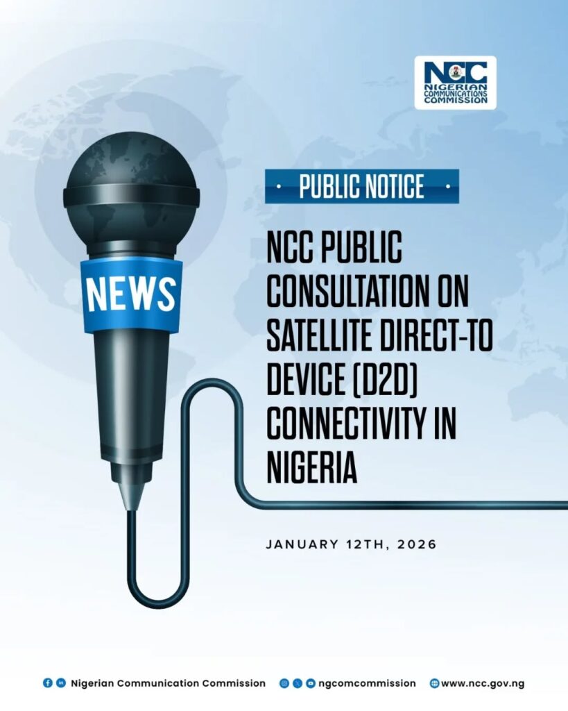 The Nigerian Communications Commission (NCC) has launched a public consultation on Satellite Direct-to-Device (D2D) connectivity, inviting stakeholders and members of the public to share their views on the opportunities, risks, and public interest considerations associated with this emerging technology.