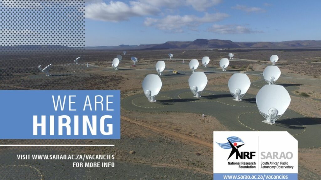 The South African Radio Astronomy Observatory (SARAO) is recruiting a receiver systems technician on a permanent contract. The successful candidate will join the team at the Carnarvon, Northern Cape facility to install, commission, maintain, repair and create processes/procedures for radio telescopes.